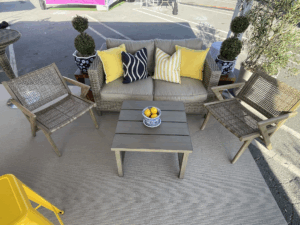Lighter furniture tones—like creams, whites, and natural woods—help open up a space. Once the foundation feels airy, bring in brand or wedding colors through pillows, accent chairs, or small décor pieces. DESIGNER8 Event Furniture Rentals offers a wide range of palettes, making it easy to customize without overcrowding.